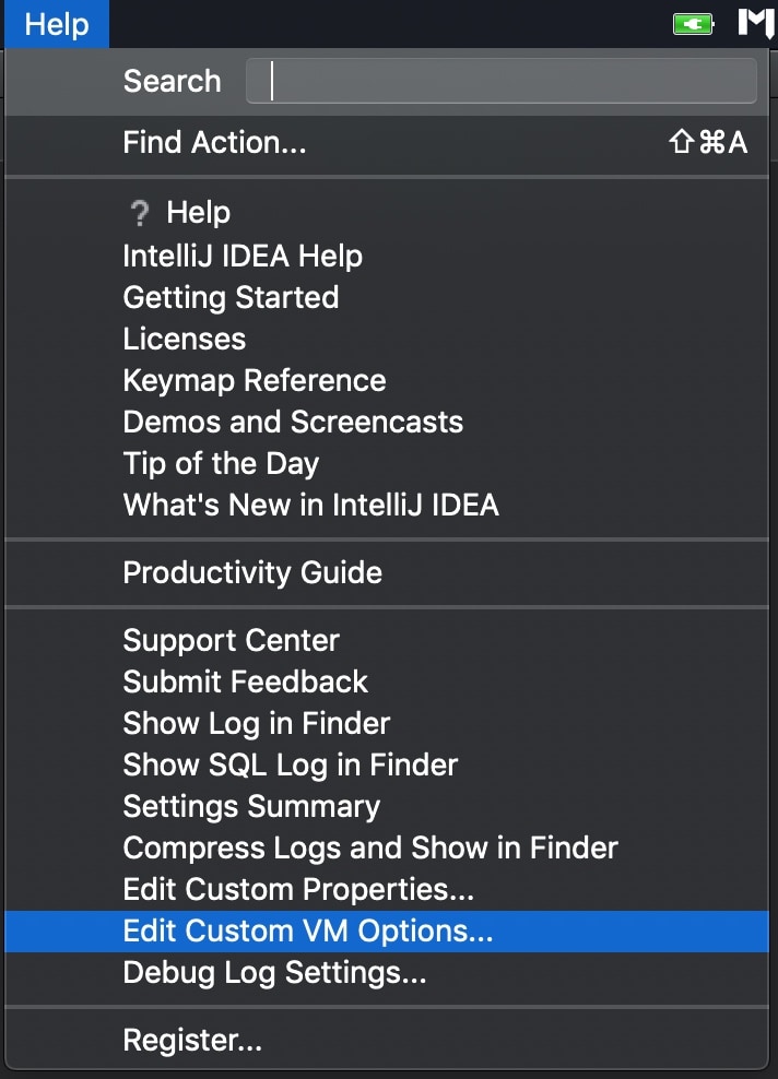 IntelliJ IDEA毕竟还是Java程序,想要发挥最大性能,还是需要好好维护JVM参数的。早期IntelliJ IDEA版本中,要维护VM Options是需要到该程序安装目录找到一个特殊文件手动编辑的。现在处理起来简单多了,只需要点菜单的这里,如图: