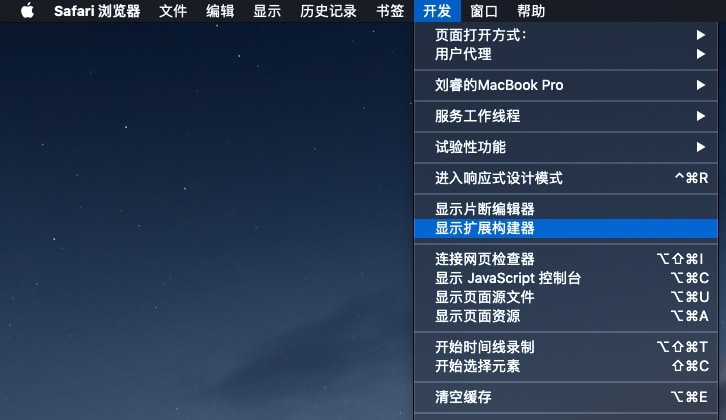 开发菜单中找到显示扩展构建器,如图: